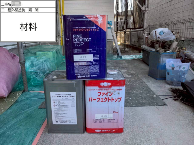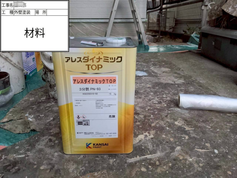 | 使用した塗料 | 外壁塗料(関西ペイント) 下塗り(アレスダイナミックプラサフ) 中上塗り(アレスダイナミックトップ) 付帯部 |