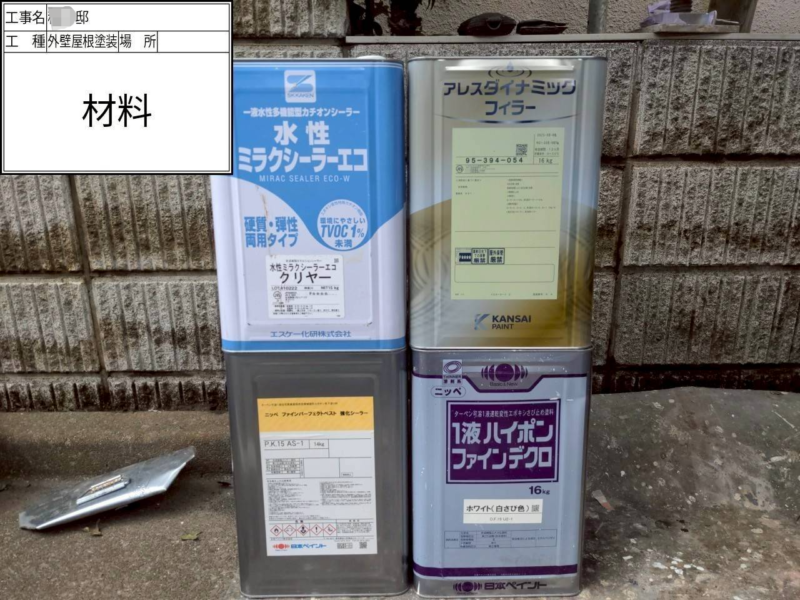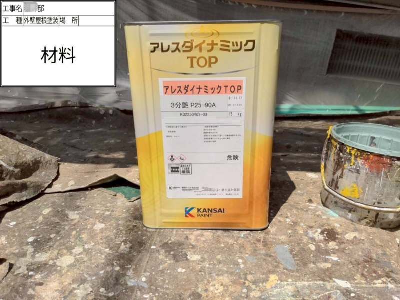 | 使用した塗料 | 外壁塗料(関西ペイント) 下塗り(アレスダイナミックフィラー) 中上塗り(アレスダイナミックトップ) 屋根塗料(日本ペイント) 付帯部 |