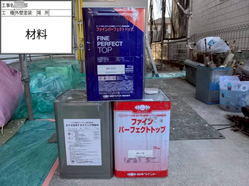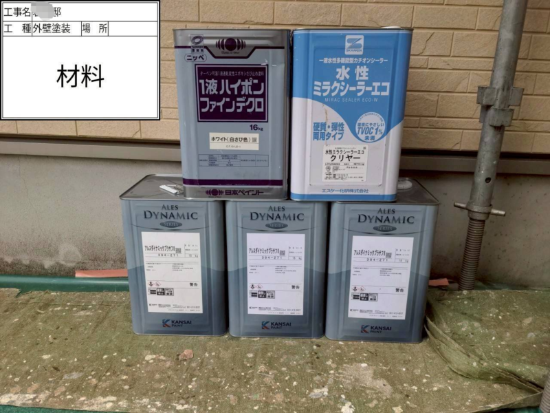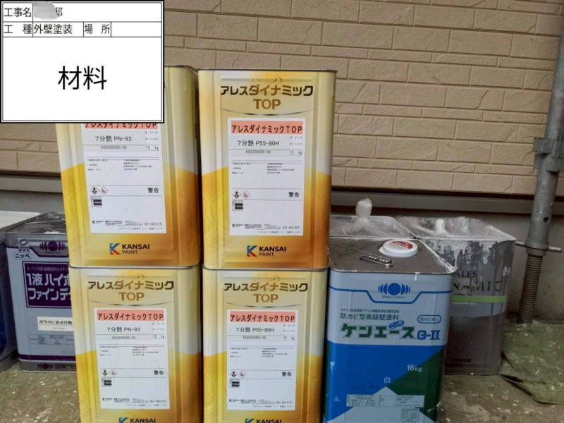 | 使用した塗料 | 外壁塗料(関西ペイント) 下塗り(アレスダイナミックプラサフ) 中上塗り(アレスダイナミックトップ) 付帯部 |